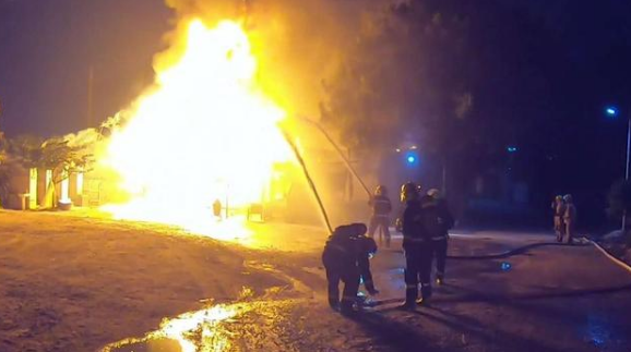 隨后防員立即利用泡沫對明火進行覆蓋,并用噴霧水對鄰近房屋進行冷卻。之后組織近戰(zhàn)撲救,20時58分現(xiàn)場明火撲滅。消防持續(xù)噴水防止復燃,最終確認現(xiàn)場無人員被困,無復燃危險。